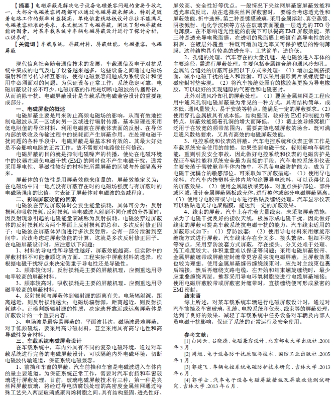 關(guān)于車載系統(tǒng)中車輛電磁屏蔽設(shè)計(jì)的探討