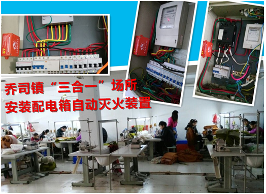 與以往“三合一”整治工作不同的是,此次工作的亮點是鎮(zhèn)政府為所有“三合一”場所的配電柜、配電箱安裝微型自動滅火裝置,該裝置由杭州華神院士工作站自主研發(fā),安裝在高運轉(zhuǎn)負荷、高火災(zāi)風(fēng)險的配電柜、配電箱內(nèi),可無人值守地監(jiān)測火情,一旦發(fā)現(xiàn)明火即可秒速啟動自動滅火裝置,噴發(fā)一種名為熱氣溶膠的環(huán)保型乳白色滅火氣體,只需十余秒就可完全撲滅明火,并啟動報警鈴音。該裝置的安裝,從高火災(zāi)隱患的電氣源頭部位杜絕了火患,為“三合一”場所內(nèi)的人員疏散和逃生贏得了寶貴的時間,有效提高了自防自救的能力。
