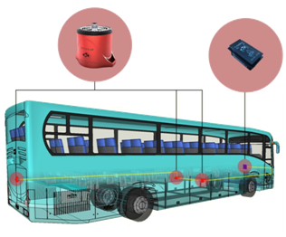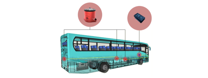 設(shè)計(jì)案例:江西百路佳新能源6.5米長客車,內(nèi)有電池艙5個(gè),故需設(shè)計(jì)的保護(hù)區(qū)為5個(gè)保護(hù)區(qū),每個(gè)保護(hù)區(qū)配置1臺(tái)自動(dòng)滅火裝置(型號(hào)QRR0.03GW/SHS-AR23ZF),5個(gè)保護(hù)區(qū)內(nèi)的5臺(tái)裝置通過總承線束和駕駛員操作盤上的模塊聯(lián)接。