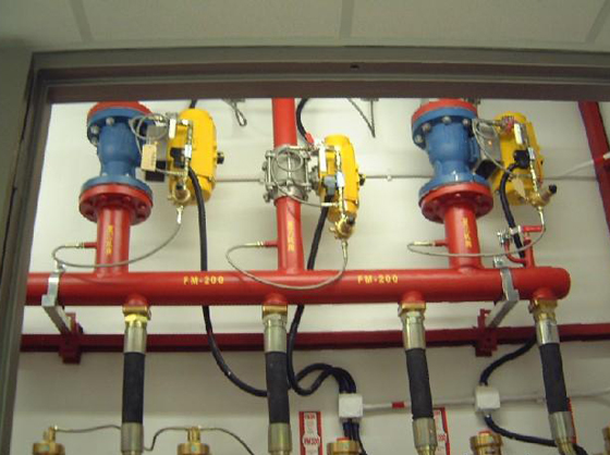 a)檢查滅火劑儲瓶組的數(shù)量和儲存七氟丙烷的總量是否符合設計的要求;