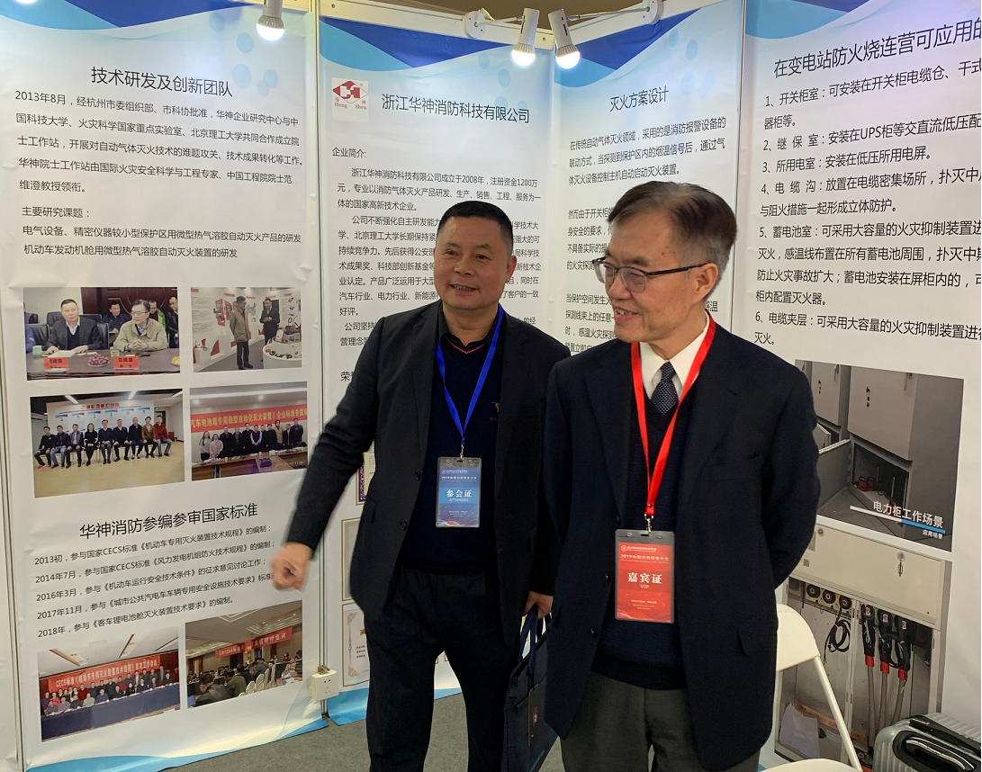 此次大會學(xué)術(shù)委員會主席、中國工程院院士、清華大學(xué)公共安全研究院院長范維澄院士(華神消防院士工作站特邀顧問),參觀了華神消防的展廳,與周建國董事長親切溝通交流了微小空間火災(zāi)抑制技術(shù)、鋰離子電池火災(zāi)抑制裝置的技術(shù)研發(fā)及推廣現(xiàn)狀,指出當(dāng)下各類火災(zāi)事故頻發(fā),公共安全形勢仍然十分嚴(yán)峻、不容松懈,華神消防專攻于火災(zāi)預(yù)警、抑制、滅火技術(shù)的研發(fā)生產(chǎn)推廣,在消防安全上要承擔(dān)起領(lǐng)頭羊的作用,消防安全任重道遠(yuǎn),需時刻牢記保護(hù)人民財產(chǎn)安全的神圣使命,為消防安全做出貢獻(xiàn)。