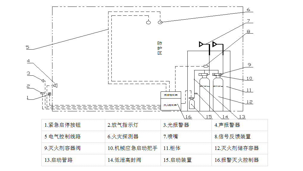 ● 該裝置的啟動(dòng)方式為自動(dòng)控制、手動(dòng)控制和機(jī)械應(yīng)急手動(dòng)控制三種。一般情況下應(yīng)使用手動(dòng)控制,在防護(hù)區(qū)無人的情況下可以轉(zhuǎn)換為自動(dòng)控制,當(dāng)自動(dòng)控制和手動(dòng)控制不能執(zhí)行時(shí),應(yīng)采用機(jī)械應(yīng)急手動(dòng)控制。
